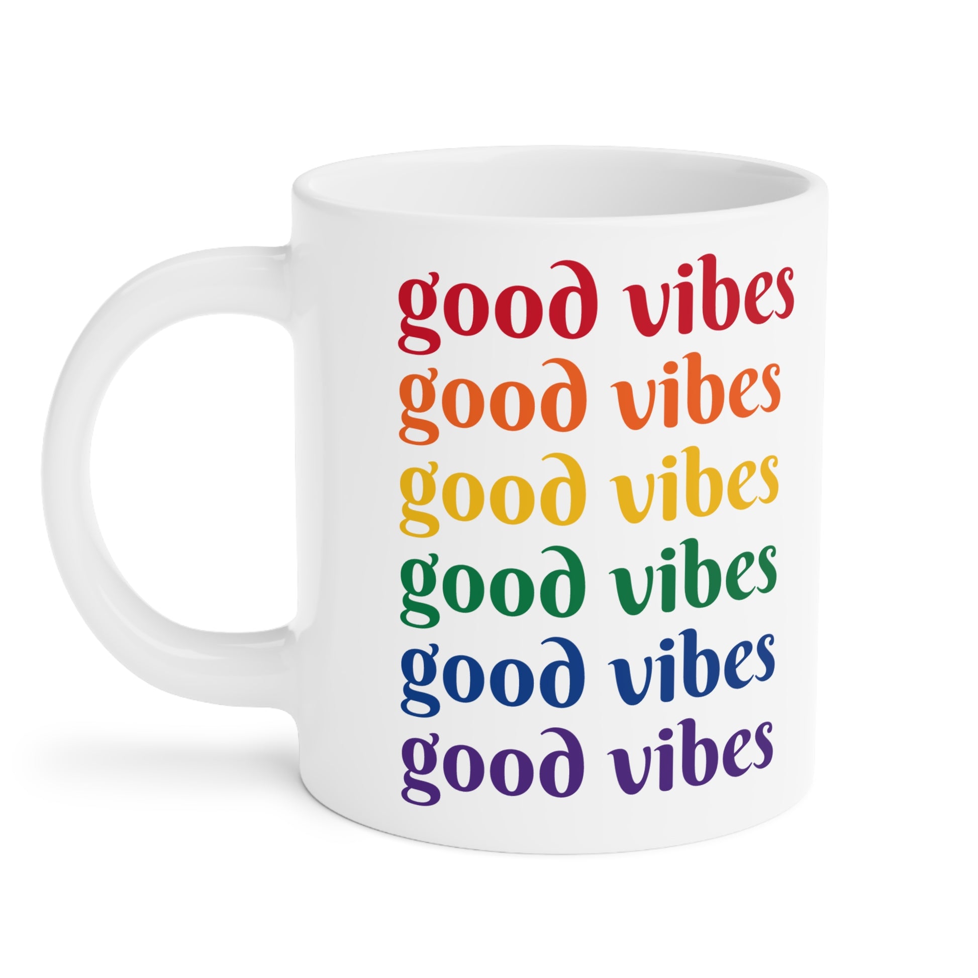 Sip with purpose and positivity with the Rainbow Good Vibes Coffee Mug! Featuring a vibrant rainbow design and the uplifting message “Good Vibes,” this mug is perfect for starting your day on a bright note. Not only does it bring joy to your morning routine, but 50% of the proceeds from each purchase go directly to charity, supporting meaningful causes. Made from durable ceramic, it’s ideal for your favorite hot drinks while spreading love and kindness. Elevate your coffee game and make a difference—because with every sip, you’re sharing good vibes and giving back!