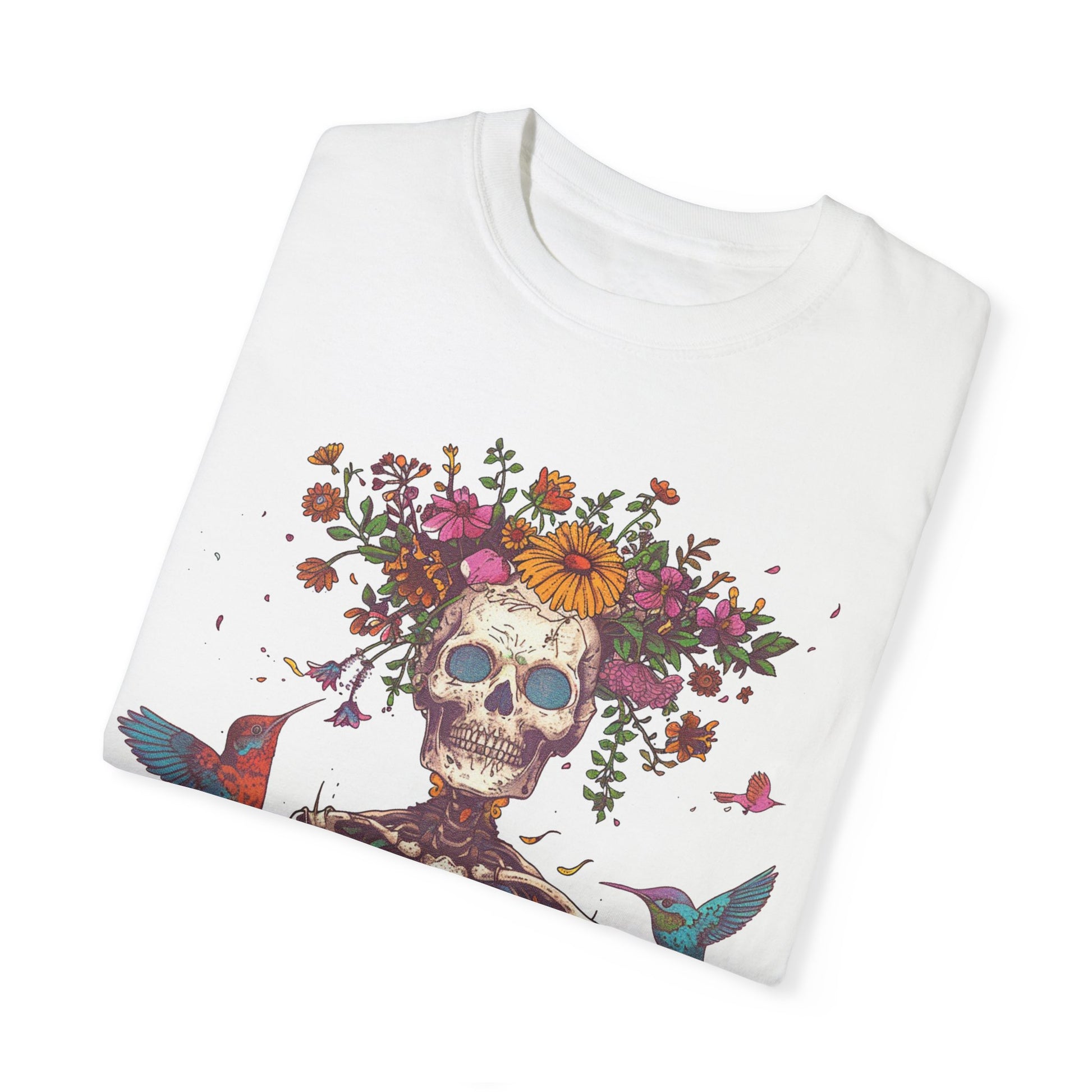 Floral Skeleton T-Shirt, Unisex Day of the Dead Shirt, Bohemian Cozy Tee, Gift for Halloween, Summer Festival Wear